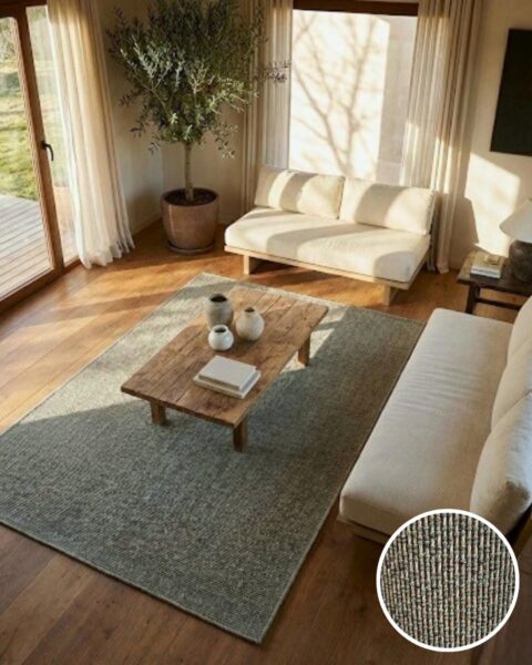 - Sistema de fabricación: Tufting – técnica que inserta hilos en una base mediante agujas, formando bucles o cortes que generan una textura uniforme. Este proceso permite una producción precisa y duradera, ideal para alfombras de alto rendimiento.