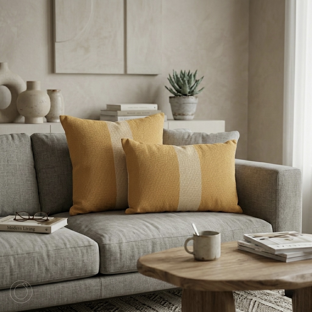 Almohadón Algodón Mostaza Combinado cuadrado