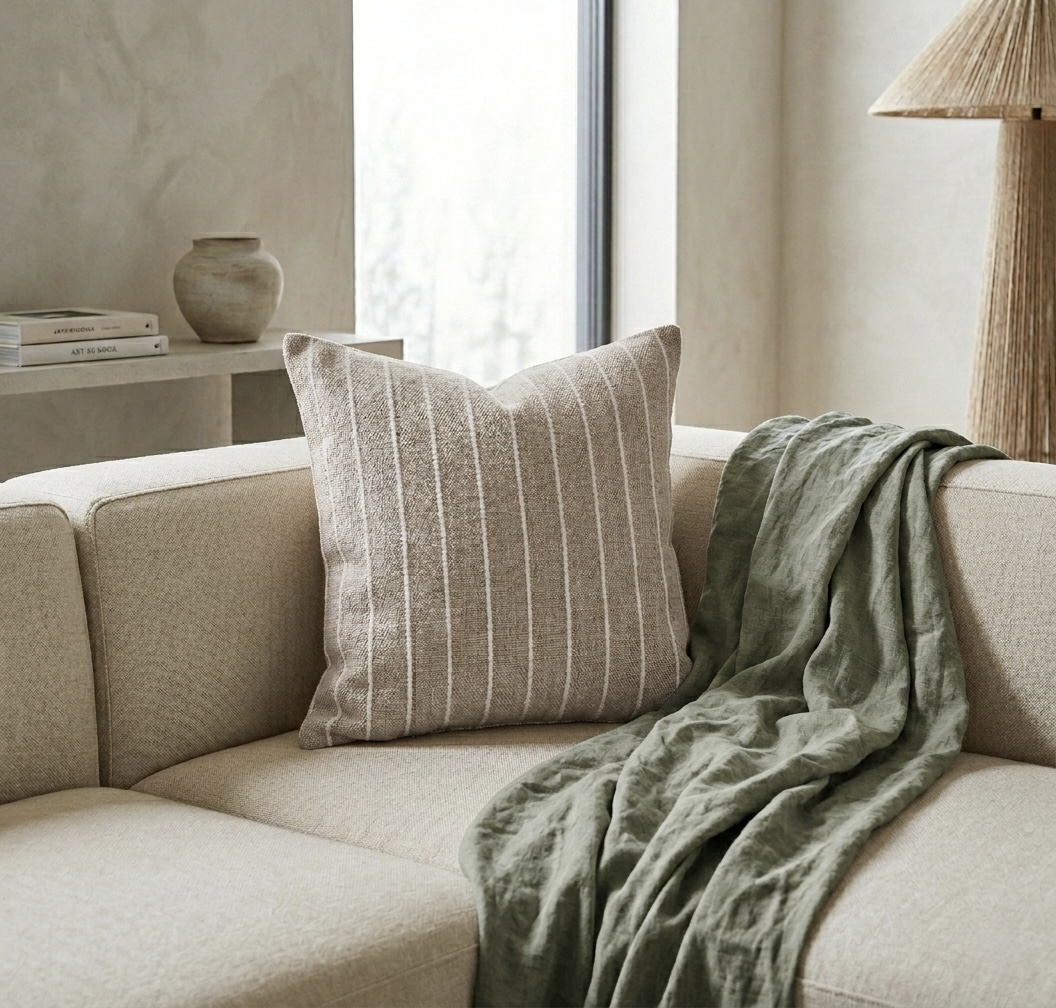 Almohadón Algodón Tostado Raya Cuadrado