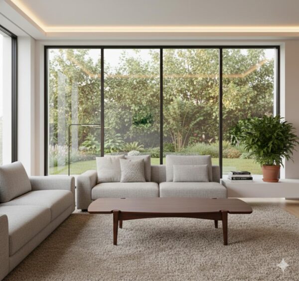 Asiento tapizado con espuma de alta densidad y recubierto en lino texturizado, garantizando confort prolongado y fácil mantenimiento.