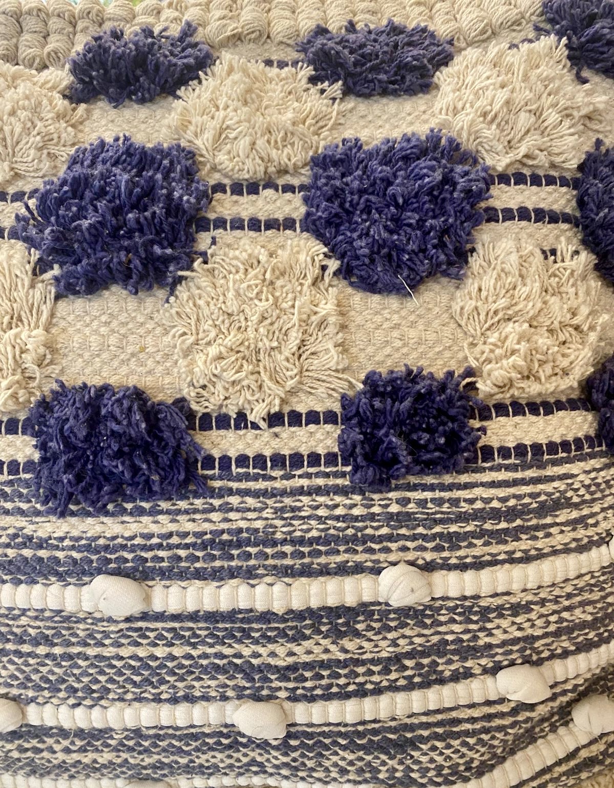 Funda Almohadón Rústico Natural con pompones azul
