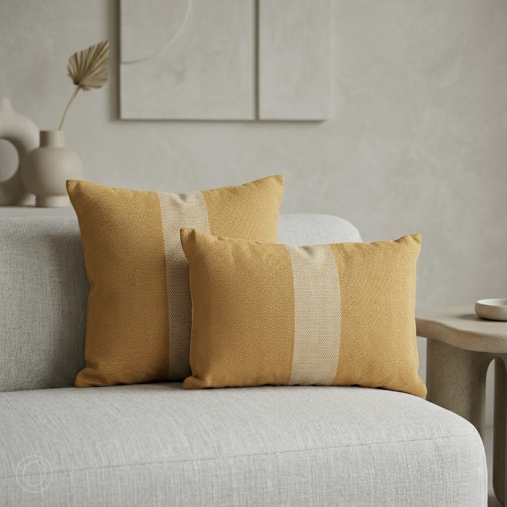 Almohadón Algodón Mostaza Combinado Rectangular