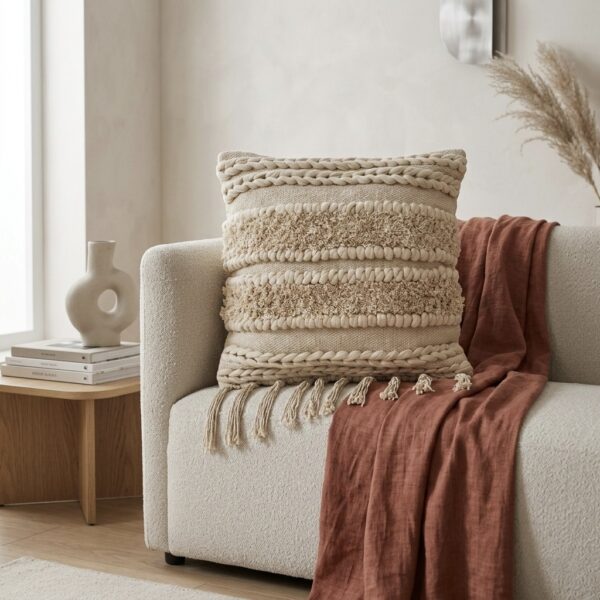 Almohadón Algodón Raya Beige y Tostado Rectangular
