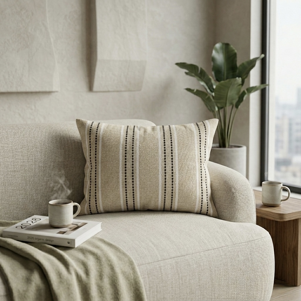 Almohadón Algodón Raya Gris Cuadrado