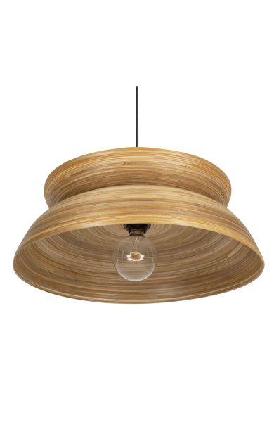 Su interior de bambú natural irradia un cálido resplandor, añadiendo un toque acogedor a tu espacio.
