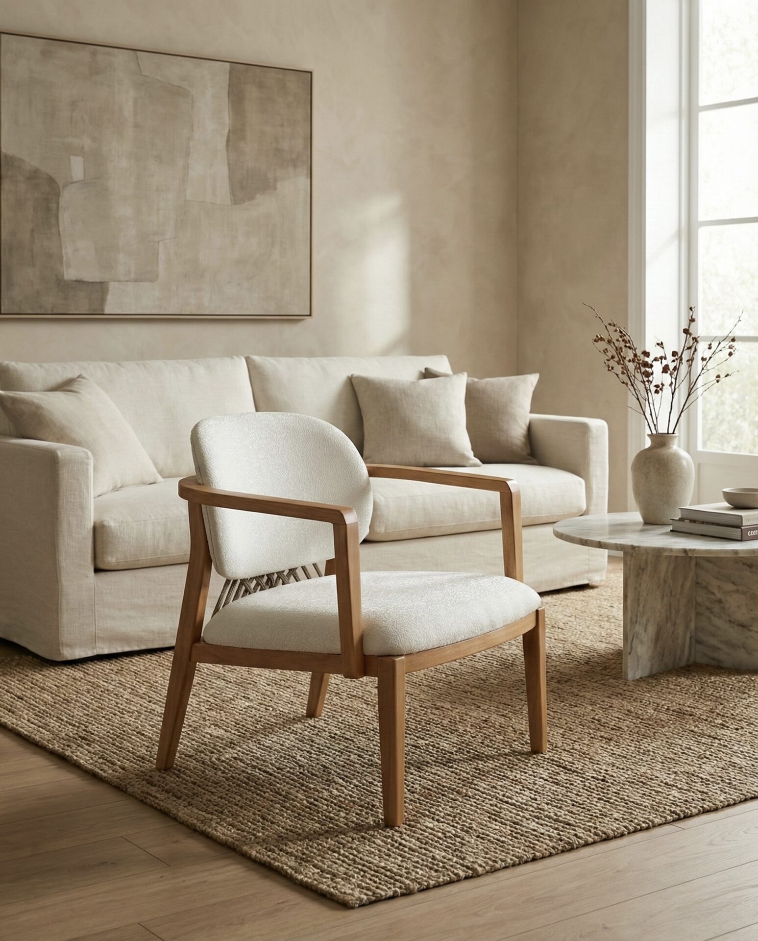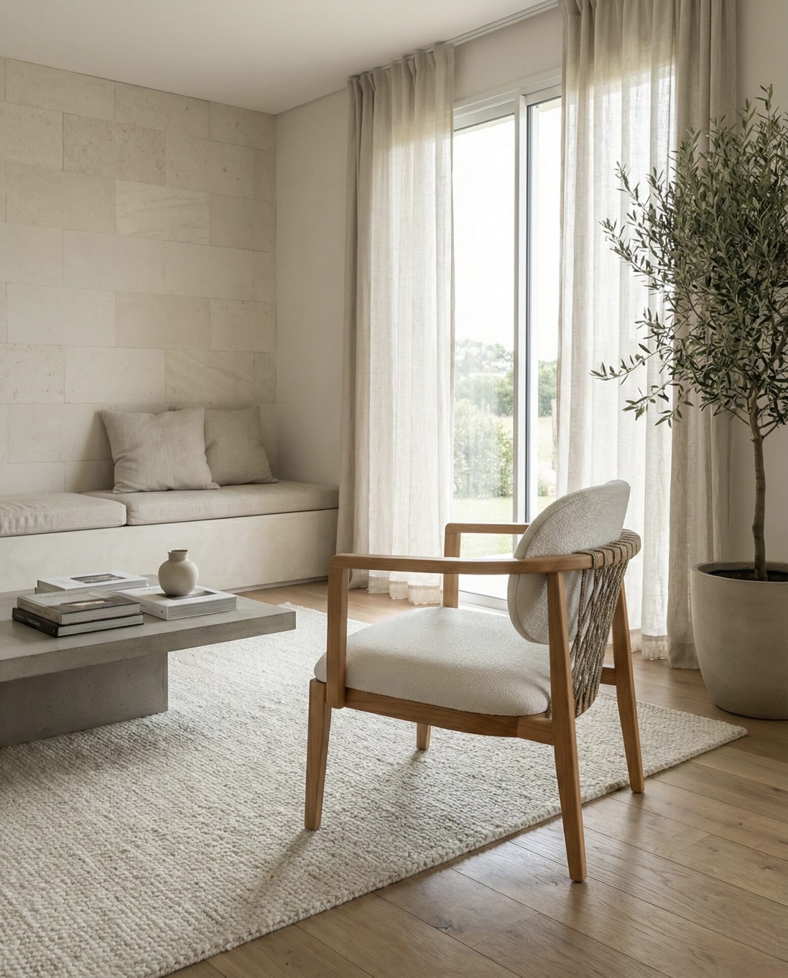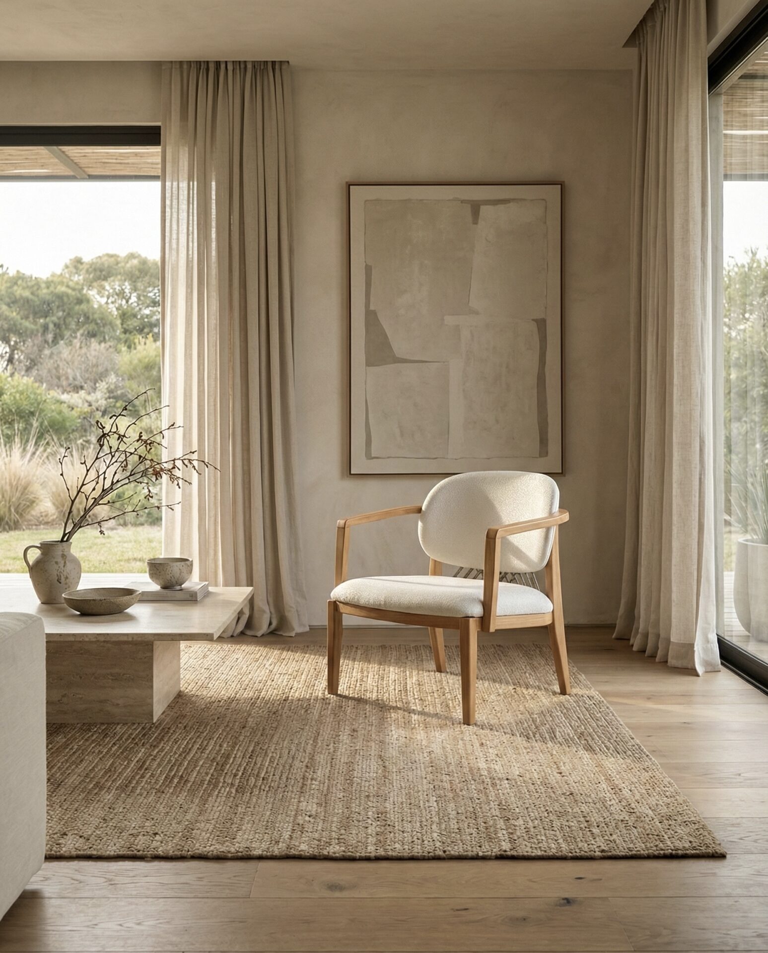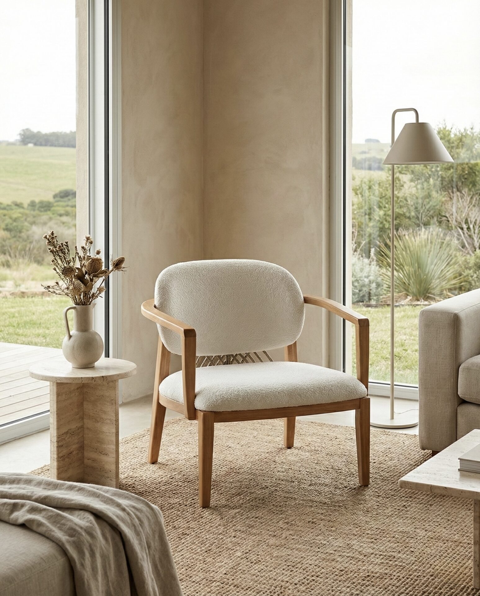 MATERIAL: Tela Boucle | Madera Maciza Tauarí