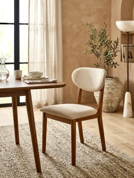 🧵 Tapizado en tejido Bouclé de alta calidad, que aporta una textura envolvente, suave al tacto y de aspecto contemporáneo.